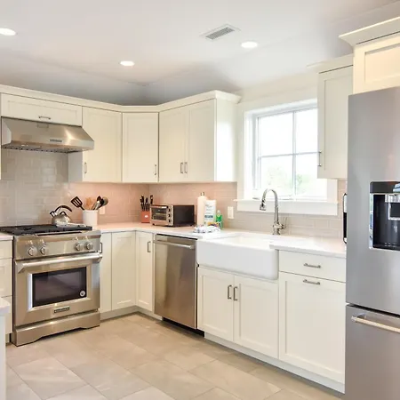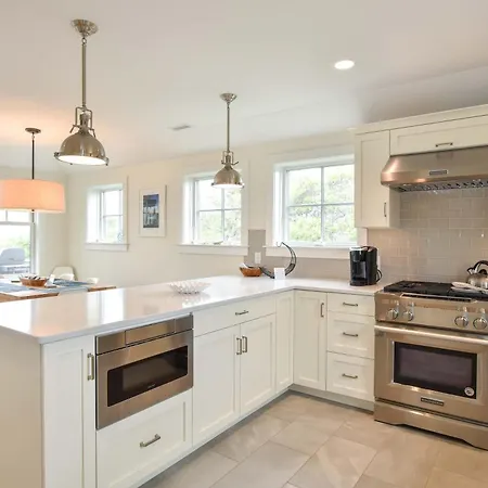The 4-bedroom Gorgeous Architectural Home w Water Views is located a 10-minute ride from Church of the Transfiguration and a 15-minute drive from the restored Nauset Lighthouse. The property features a kitchen with tea and coffee making equipment, a refrigerator, and an oven to meet all guests' needs.