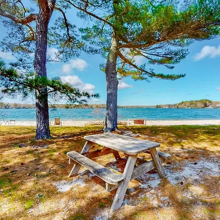 Johns Pond Beach Retreat - Unit 4 apartment is a beachfront property a 10-minute ride from Mashpee River Woodlands. This apartment also includes a kitchen with a microwave oven, coffee and tea making equipment, and refrigerators.